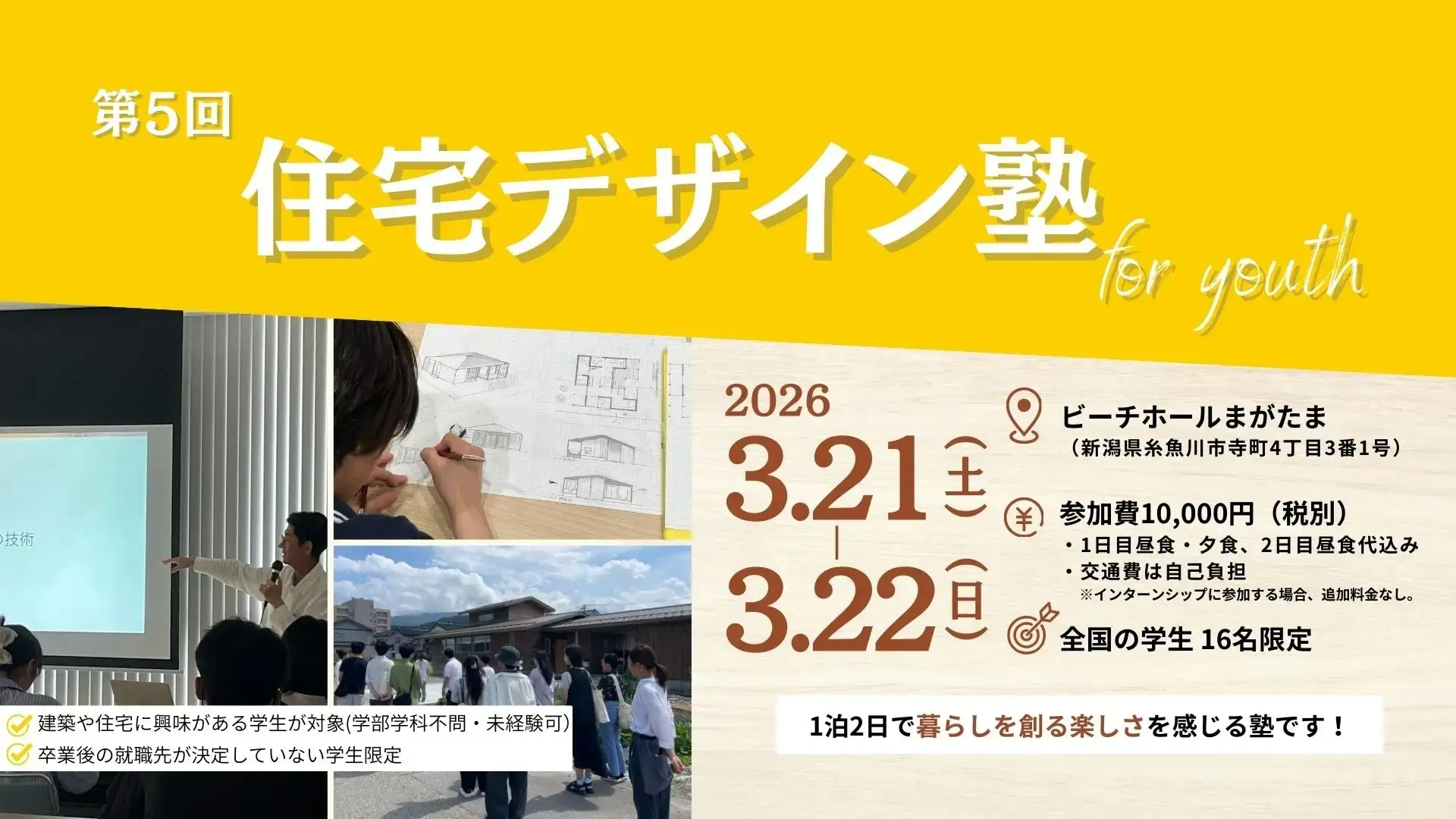 「第5回住宅デザイン塾 for youth」を2026年3月に開講。糸魚川の老舗工務店カネタ建設が主催。 | 株式会社Asian Bridgeのプレスリリース